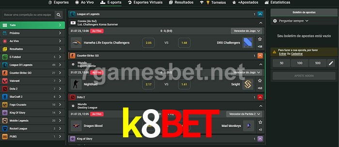 O k8bet oferece uma grande seleção de opções de apostas em e-sports com probabilidades competitivas
